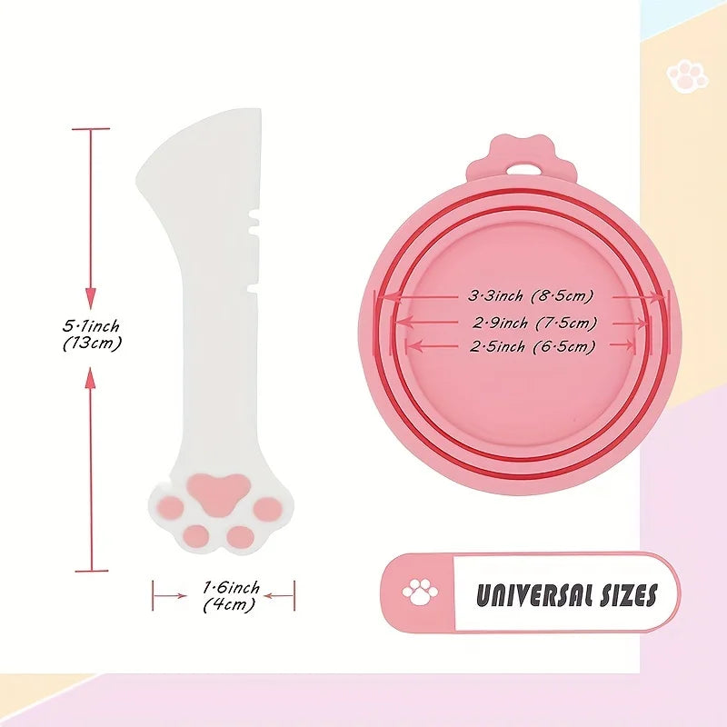 3 Pcs Pet Food Can Lids & One Can Spoon Universal BPA Free Silicone Can Spoon & Covers for Dog Cat Cans