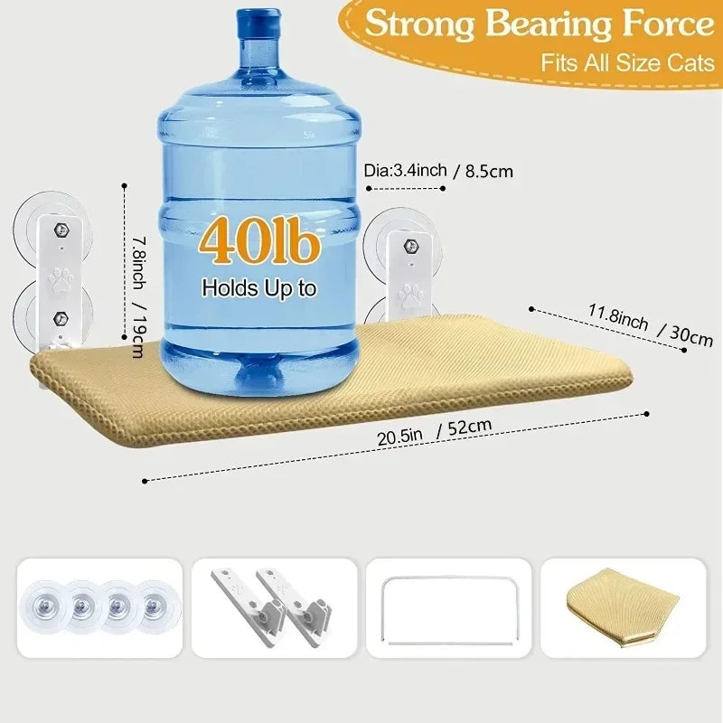 Cordless Cat Hammock for Sunbathing Hanging Cat Bed Summer Suction Cup Glass Mounted Foldable Breathable Cat Bed Frame Supplies