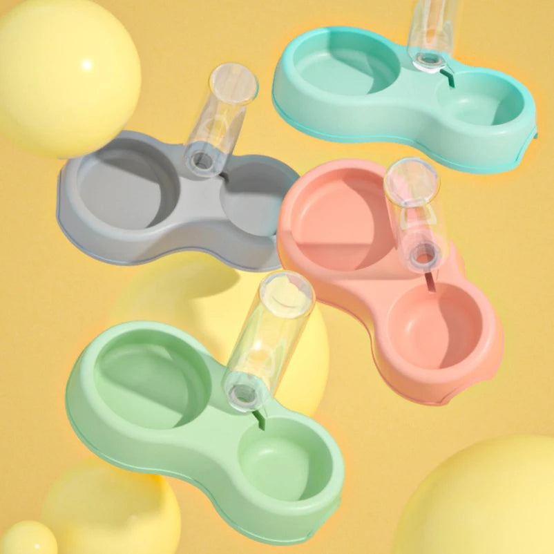 Pet Cat Bowl Automatic Feeder Water Dispenser Dog Cat Food Bowl with Drinking Raised Stand Double Dish Bowls for Cats Dogs Pet